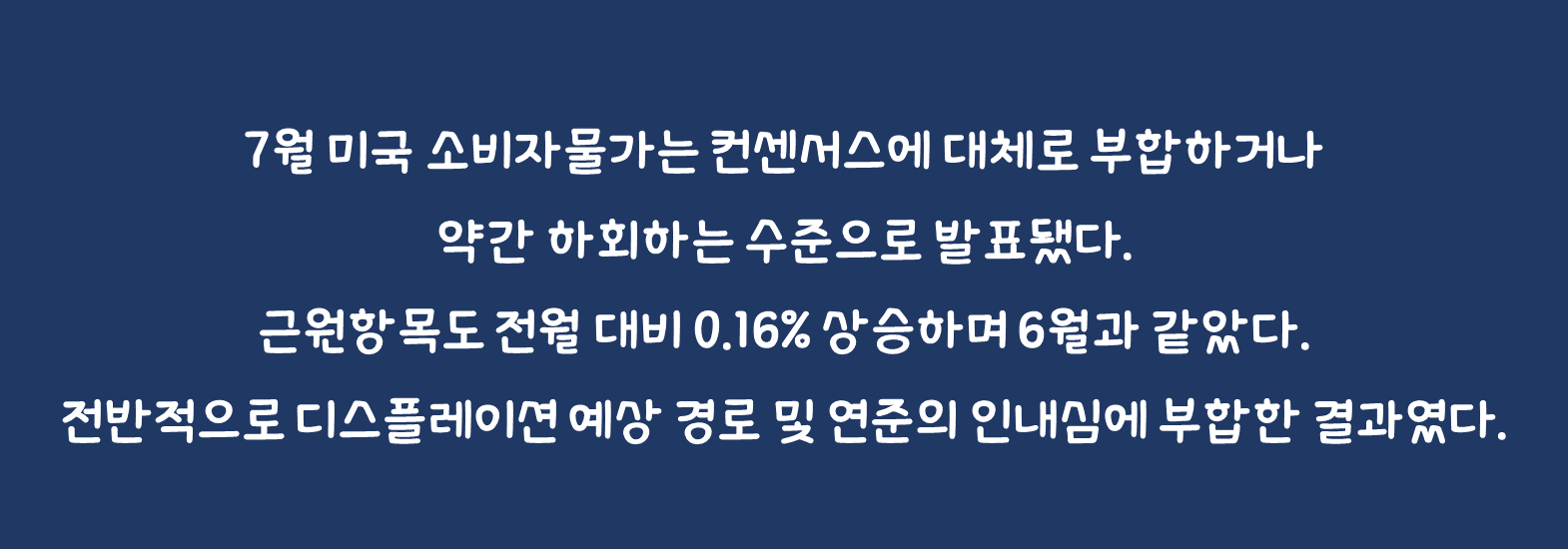 ■ 연준의 인내심에 부합한 7월 소비자물가 보고서, 중고차, 주거비 주도의 디스플레이션 지속 전망