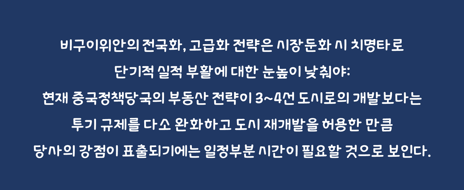 ■ 비구이위안의 전국화, 고급화 전략은 시장둔화 시 치명타. 단기적 실적 부활 눈높이 낮춰야
