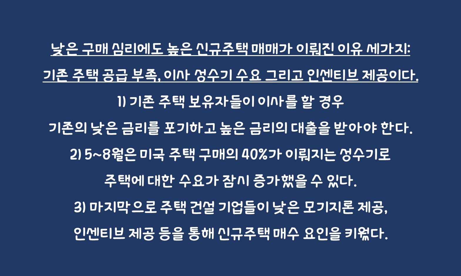 낮은 구매 심리에도 높은 신규주택 매매가 이뤄진 이유 세가지: