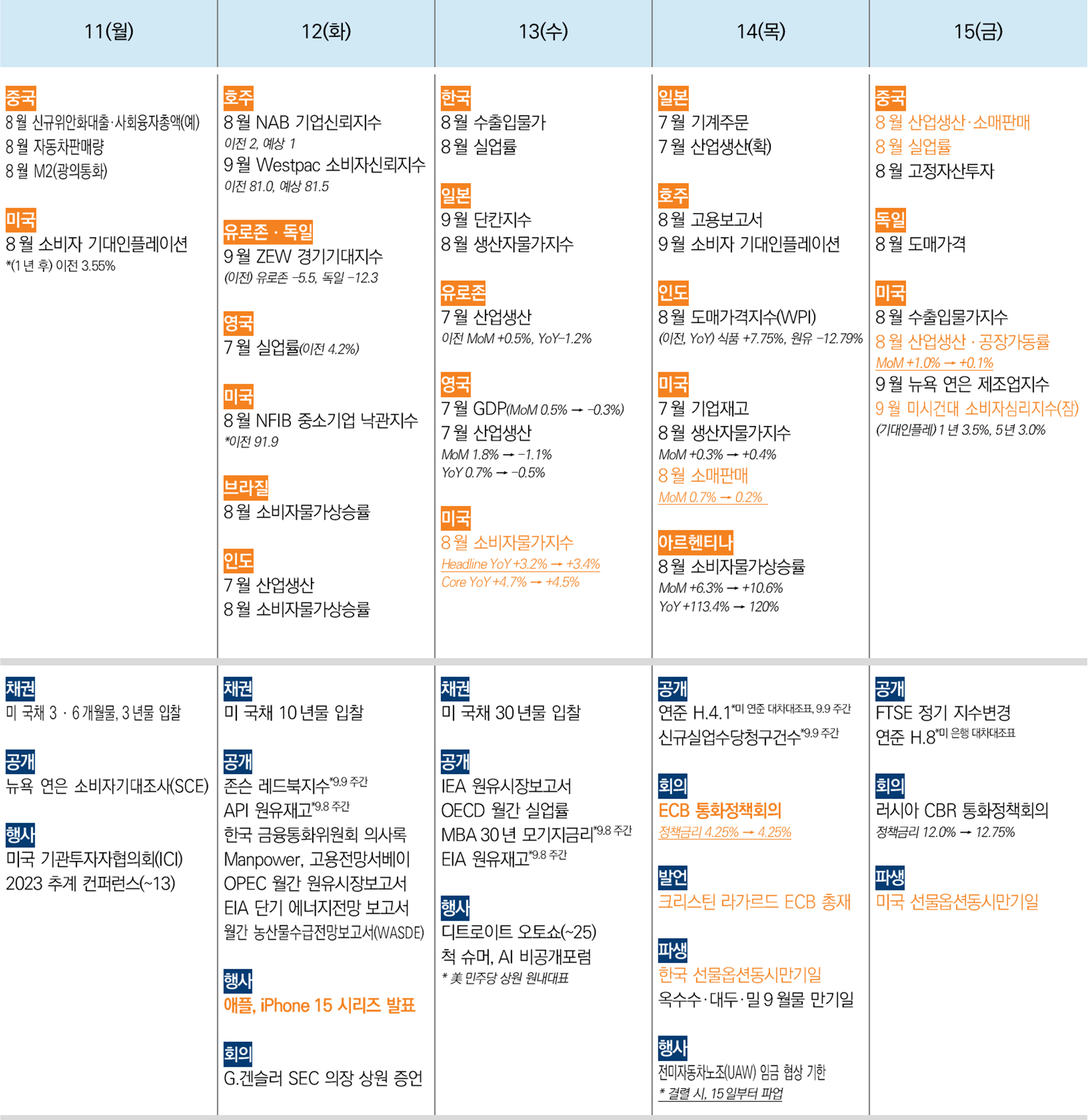 9/15(금) 중국 8월 산업생산, 소매판매, 미국 8월 산업생산, 9월 미시건대 소비자심리지수