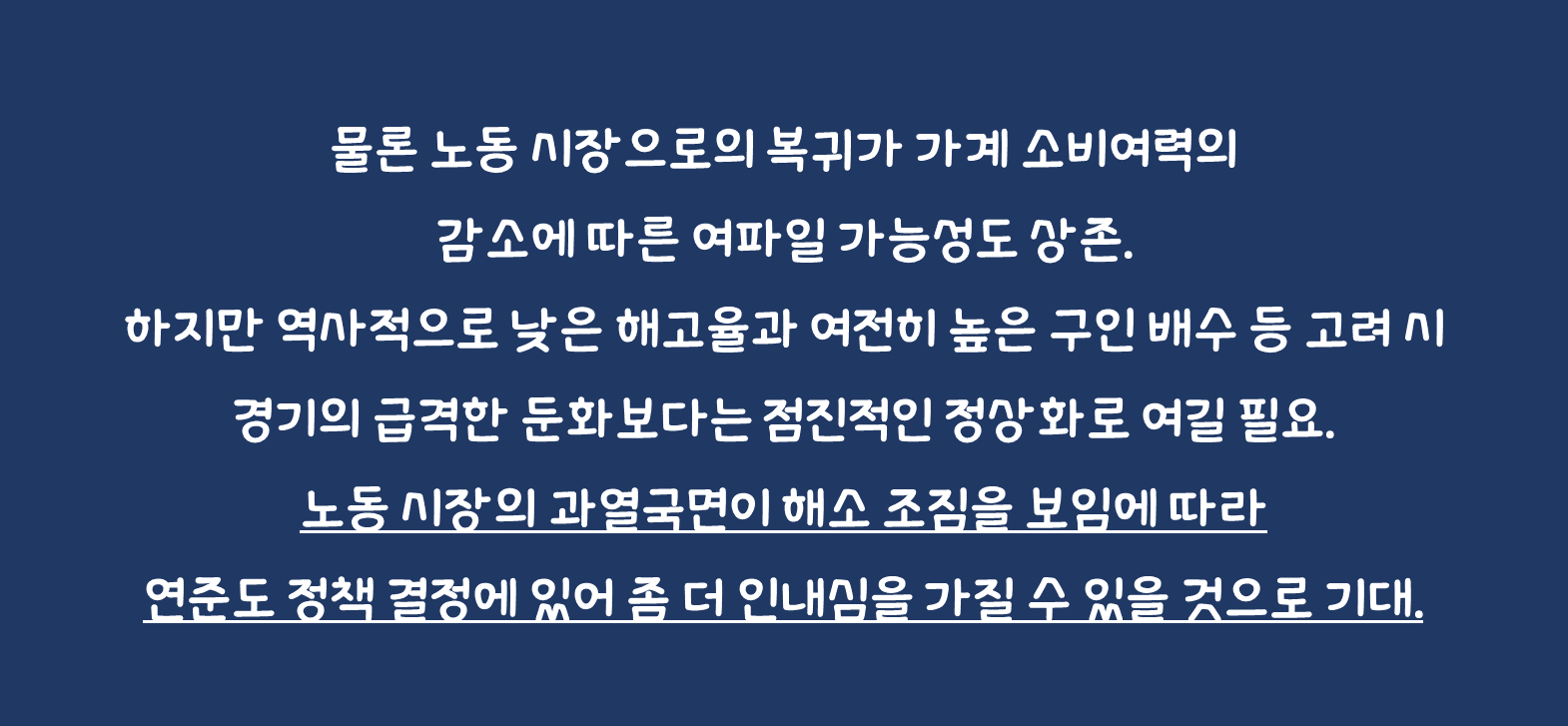 • 노동 공급이 증가하면 연착륙에 필요한 노동 수요를 충분히 흡수하고도 더 많은 공급으로 실업률이 상승할 수 있음. 일반적으로 실업률의 증가는 경기에 부정적인 소식이지만 과열된 노동시장을 고려했을 때 지금은 정상화로 보는 측면이 타당. 게다가 시간당 임금 상승률의 둔화도 노동 공급 증가의 측면에서 바라보면 공급 병목 해소에 따른 협상력의 변화에 기인했을 가능성이 높음.