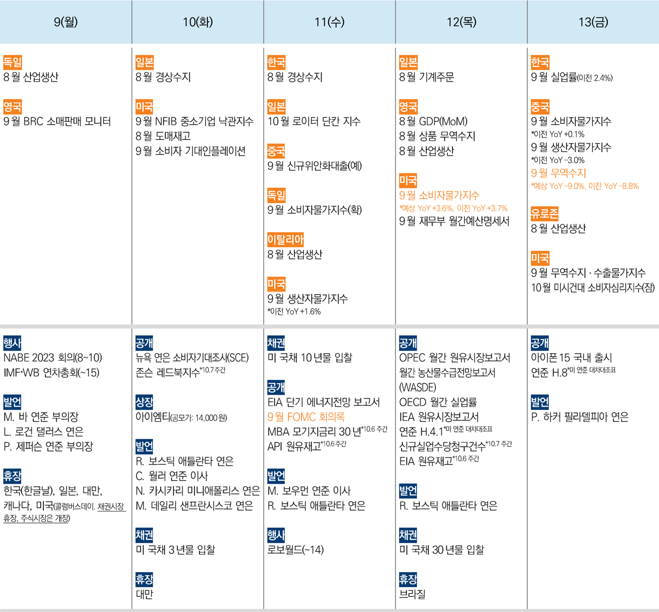 다음 주 주요경제지표 일정