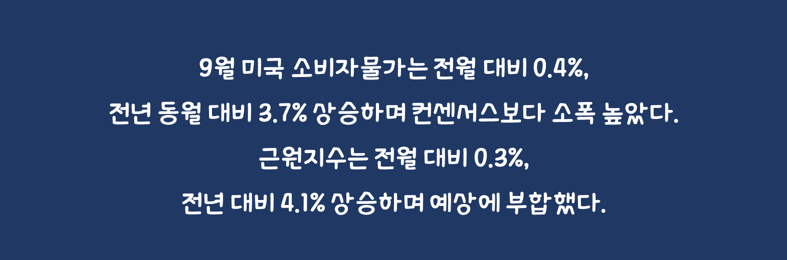 미국 9월 소비자물가 상승률 헤드라인은 컨센 상회. 근원항목은 컨센에 부합: