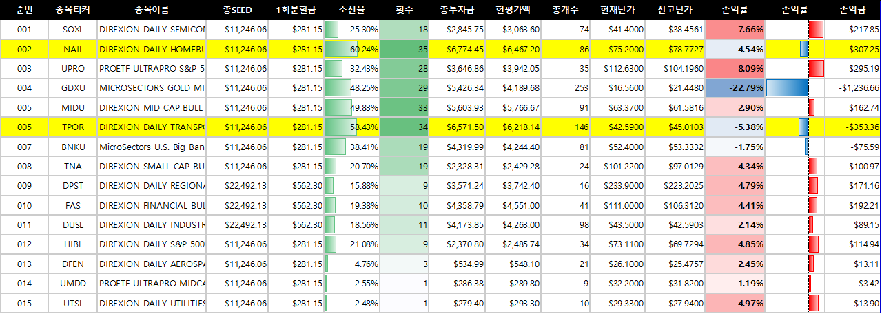 4) 따라서 추천종목은 아니나 상대적으로 RSI가 아주 낮은 UMDD, UTSL을 추가 매수 시작했습니다.