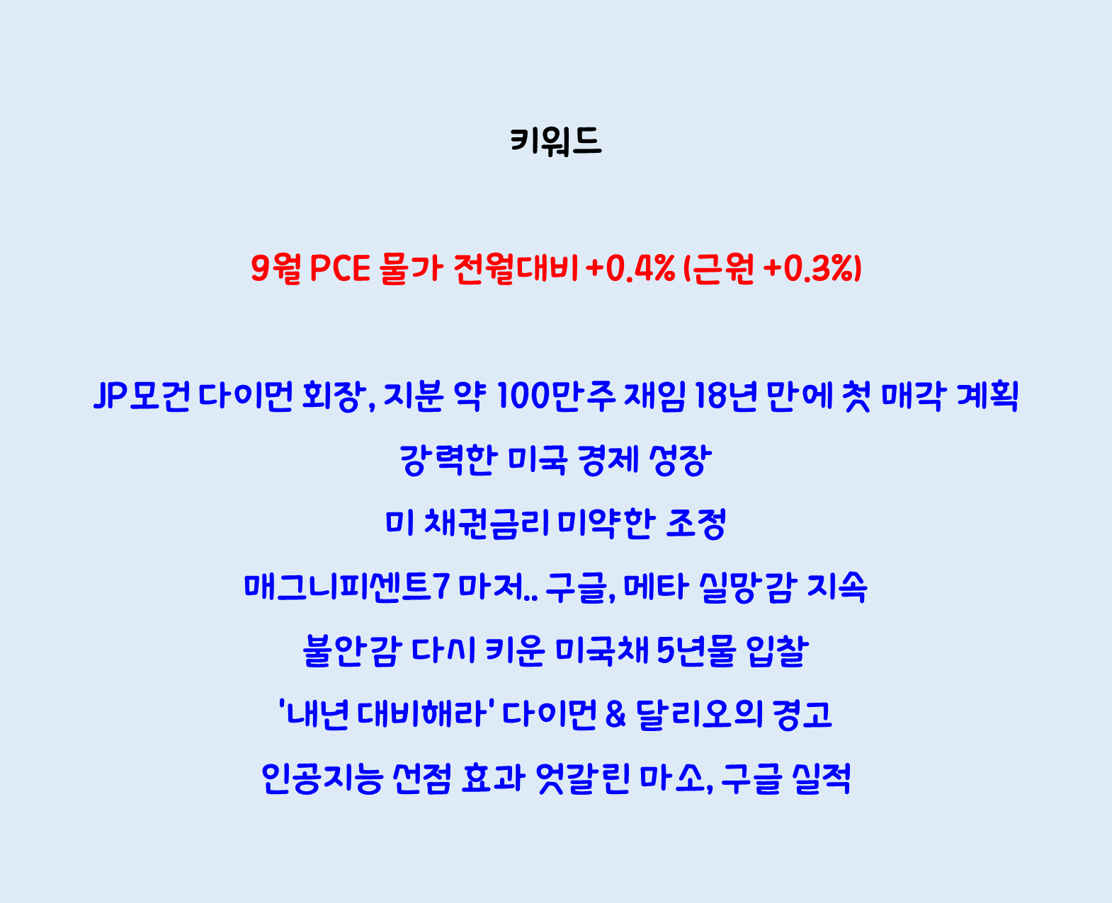 9월 PCE 물가 전월대비 +0.4% (근원 +0.3%)